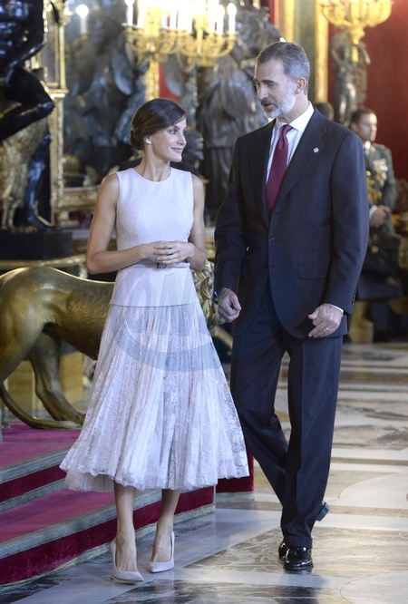 Krolowa Letizia i krol Filip na przyjeciu w palacu krolewskim z okazji Dnia Narodowego