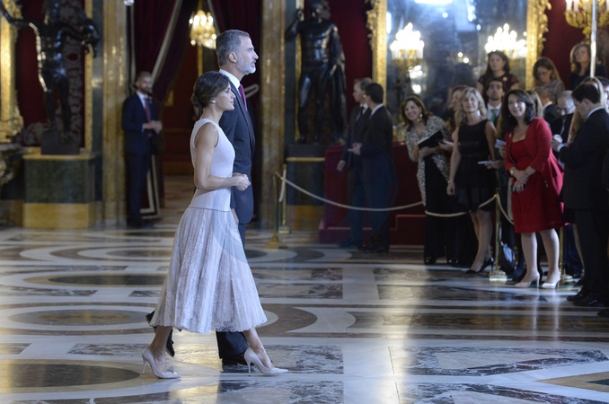 Krolowa Letizia i krol Filip na przyjeciu w palacu krolewskim z okazji Dnia Narodowego