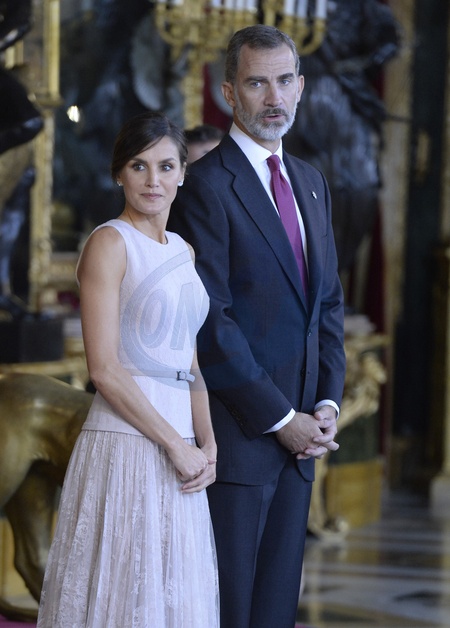 Krolowa Letizia i krol Filip na przyjeciu w palacu krolewskim z okazji Dnia Narodowego