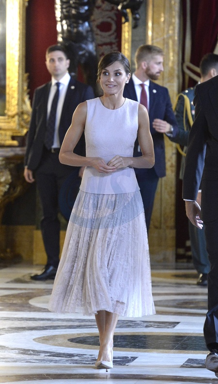 Krolowa Letizia i krol Filip na przyjeciu w palacu krolewskim z okazji Dnia Narodowego