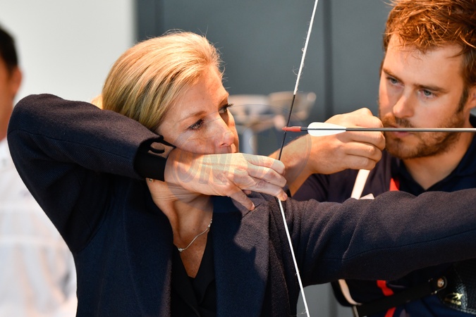 Ksiaze Edward z zona Sophie ucza sie strzelac z luku