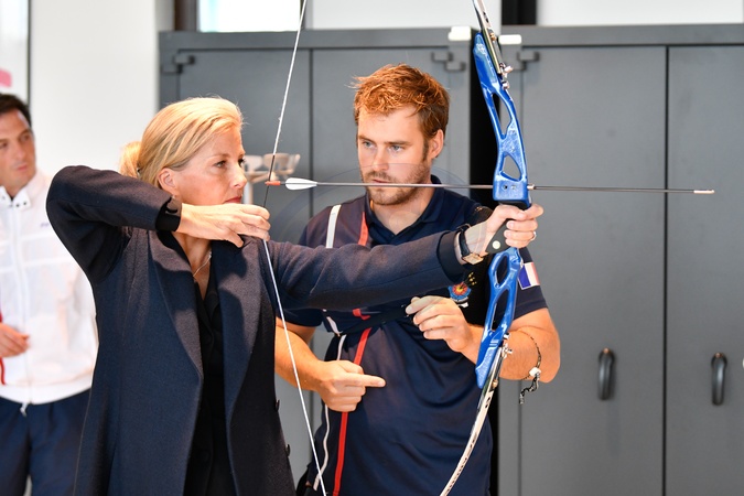Ksiaze Edward z zona Sophie ucza sie strzelac z luku