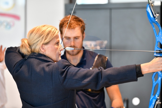 Ksiaze Edward z zona Sophie ucza sie strzelac z luku