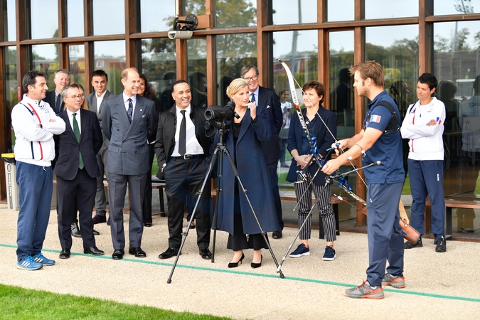 Ksiaze Edward z zona Sophie ucza sie strzelac z luku