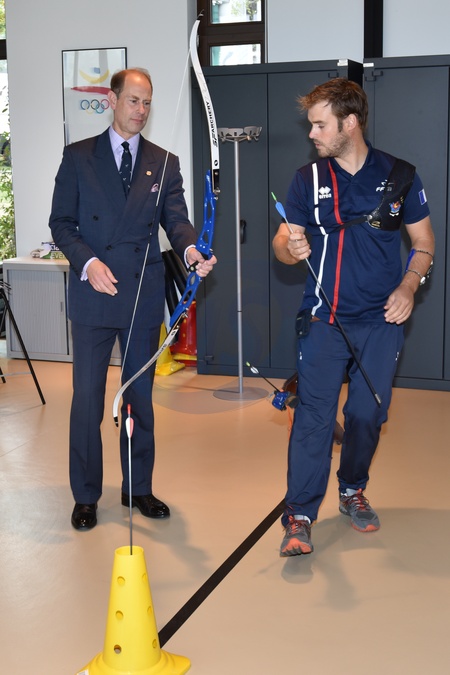 Ksiaze Edward z zona Sophie ucza sie strzelac z luku