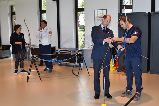 Ksiaze Edward z zona Sophie ucza sie strzelac z luku