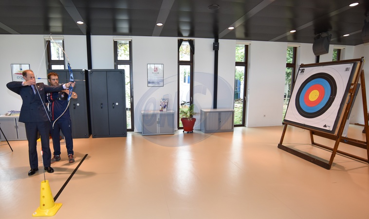 Ksiaze Edward z zona Sophie ucza sie strzelac z luku