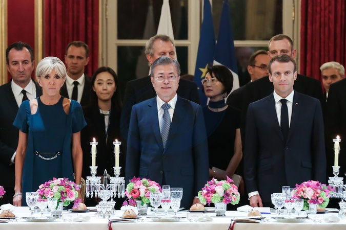 Emmanuel Macron, Brigitte Macron, Moon Jae-in