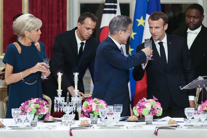 Emmanuel Macron, Brigitte Macron, Moon Jae-in