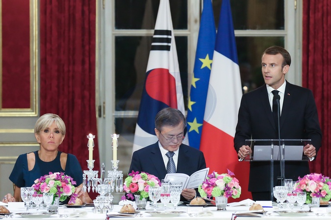 Emmanuel Macron, Brigitte Macron, Moon Jae-in