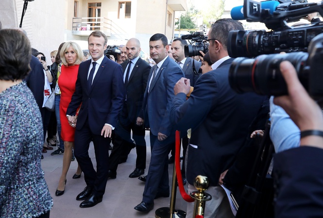 Macronowie i rodzina C. Aznavoura odwiedzili Charles Aznavour Museum and Foundation w Yerevan