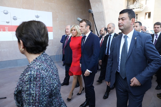 Macronowie i rodzina C. Aznavoura odwiedzili Charles Aznavour Museum and Foundation w Yerevan