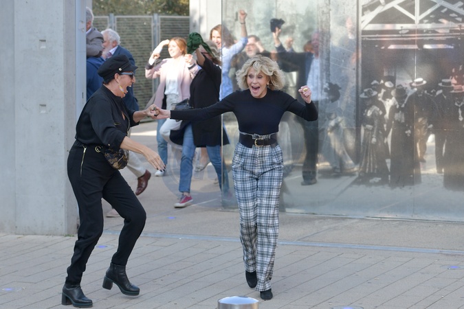 Jane Fonda w spodniach w kratke szaleje na 10 Festival Lumiere w Lyon