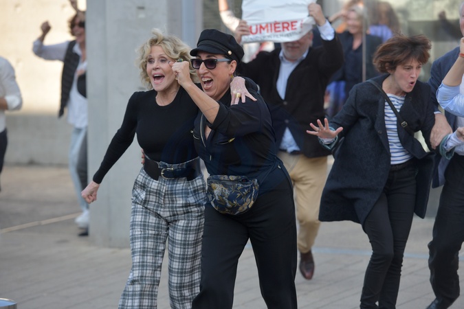 Jane Fonda w spodniach w kratke szaleje na 10 Festival Lumiere w Lyon