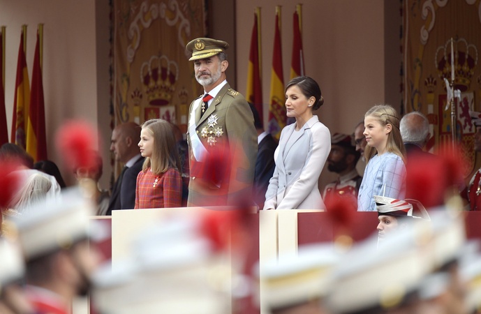 Hiszpanska para krolewska z corkami podczas Dnia Narodowego