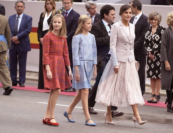 Hiszpanska para krolewska z corkami podczas Dnia Narodowego