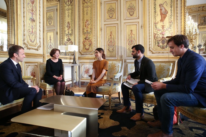 Emmanuel Macron na spotkaniu z Nadia Murad