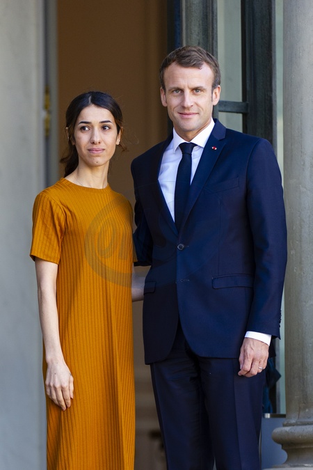 Emmanuel Macron na spotkaniu z Nadia Murad