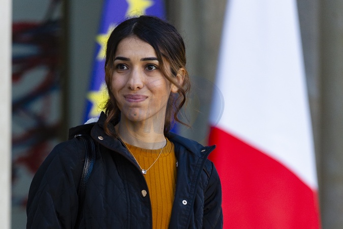 Emmanuel Macron na spotkaniu z Nadia Murad