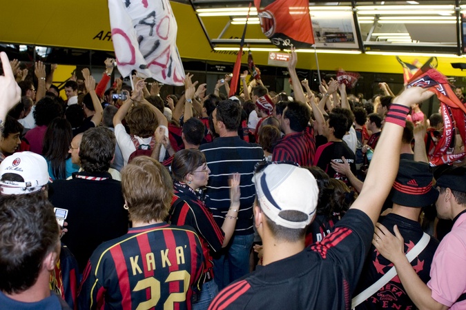Druzyna AC Milan powraca do Wloch po zwycieskim meczu nad druzyna Liverpoolu, Mediolan