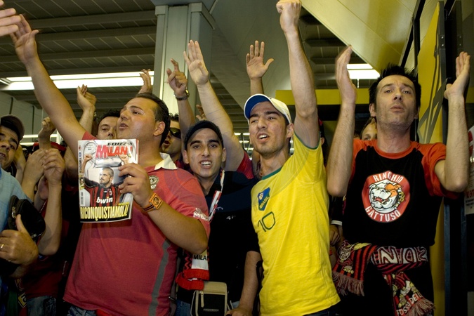 Druzyna AC Milan powraca do Wloch po zwycieskim meczu nad druzyna Liverpoolu, Mediolan