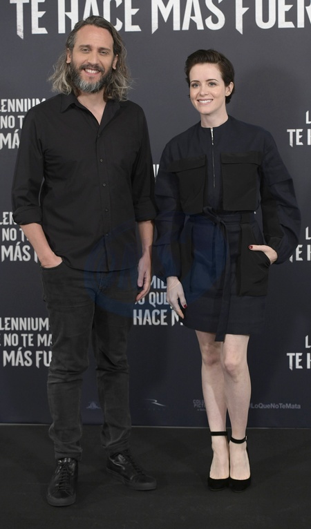 Claire Foy i Federico Alvarez na photocall The Girl in the Spiders Web, Madryt