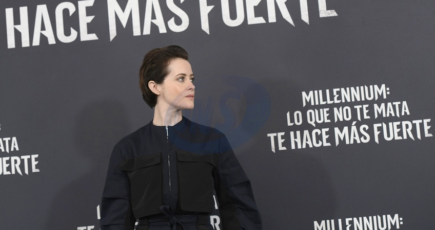 Claire Foy i Federico Alvarez na photocall The Girl in the Spiders Web, Madryt