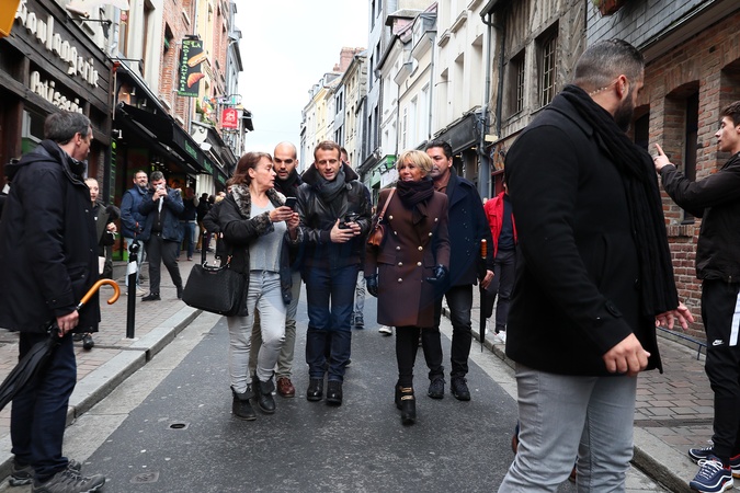 Brigitte Macron i Emmanuel Macron podczas wizyty w Honfleur