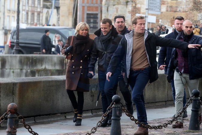 Brigitte Macron i Emmanuel Macron podczas wizyty w Honfleur