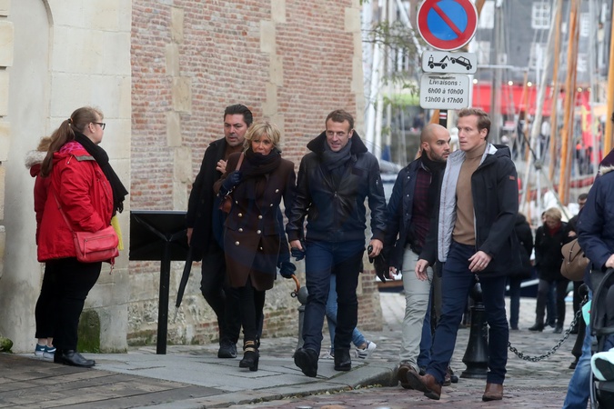 Brigitte Macron i Emmanuel Macron podczas wizyty w Honfleur