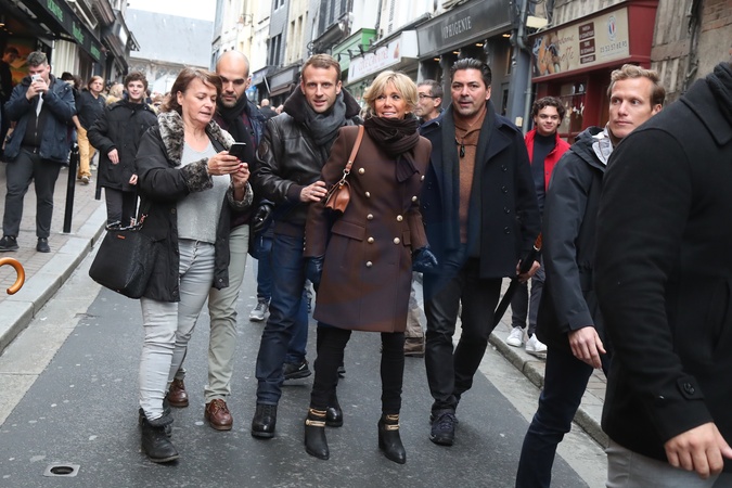 Brigitte Macron i Emmanuel Macron podczas wizyty w Honfleur