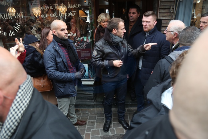 Brigitte Macron i Emmanuel Macron podczas wizyty w Honfleur