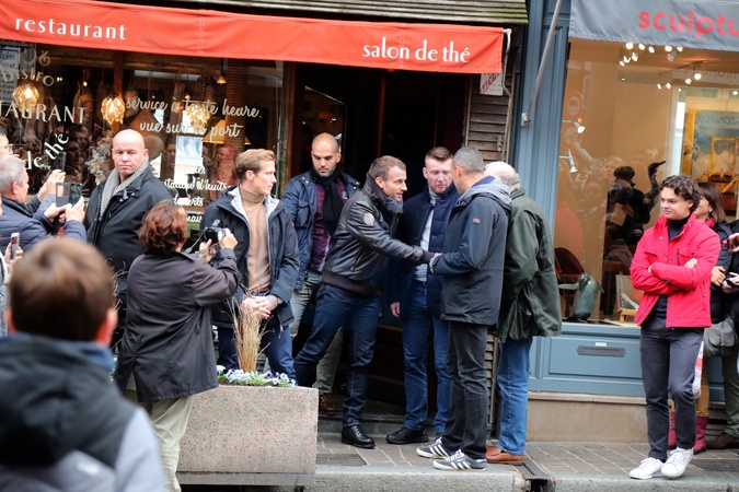 Brigitte Macron i Emmanuel Macron podczas wizyty w Honfleur