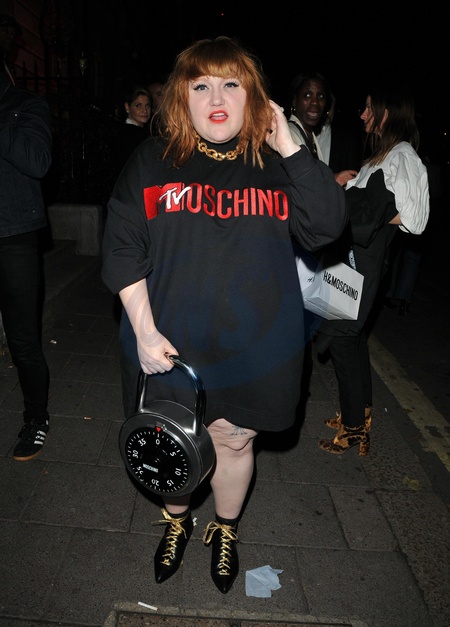 Beth Ditto w sukience Moschino i z dziwna torebka