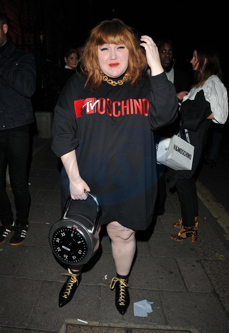 Beth Ditto w sukience Moschino i z dziwna torebka