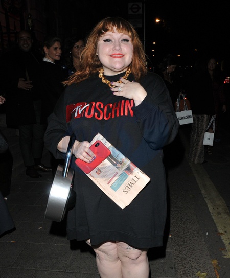 Beth Ditto w sukience Moschino i z dziwna torebka