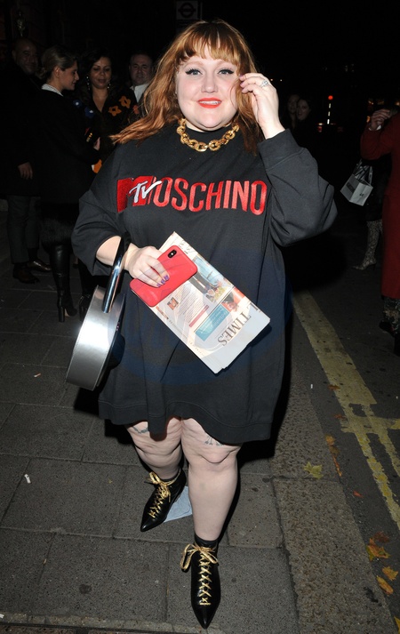 Beth Ditto w sukience Moschino i z dziwna torebka
