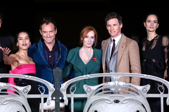 Zoe Kravitz, Jude Law, J.K. Rowling, Eddie Redmayne, Katherine Waterston