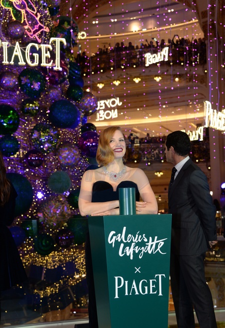 Jessica Chastein na choinkowej inauguracji w Galeries Lafayette