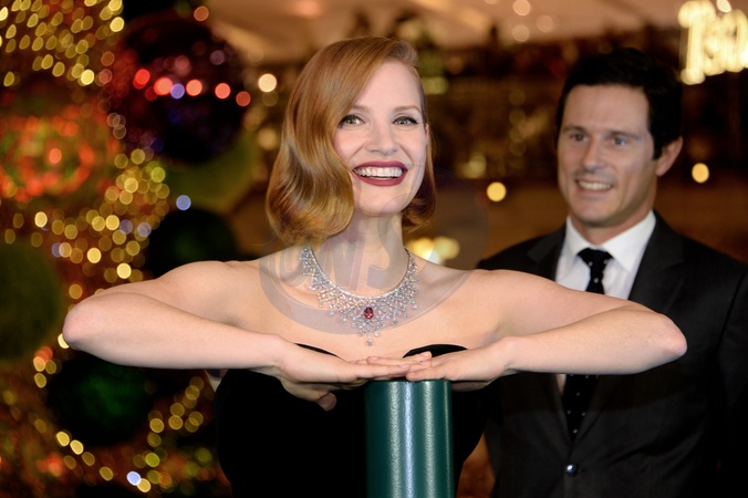 Jessica Chastein na choinkowej inauguracji w Galeries Lafayette