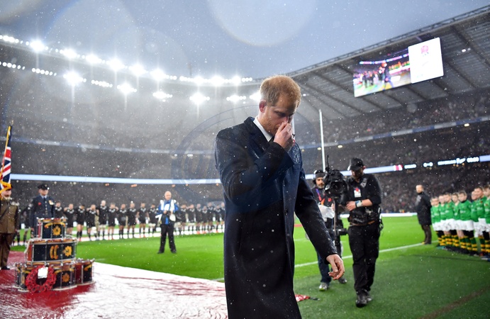 Ksiaze Harry moknie na meczu rugby Anglia - Nowa Zelandia