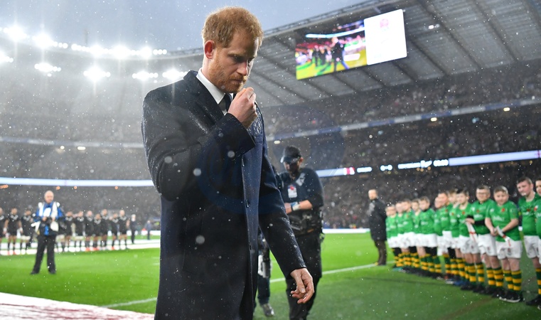 Ksiaze Harry moknie na meczu rugby Anglia - Nowa Zelandia