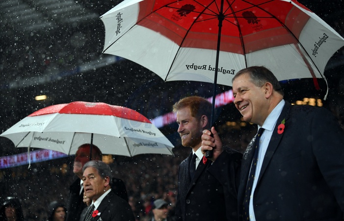Ksiaze Harry moknie na meczu rugby Anglia - Nowa Zelandia