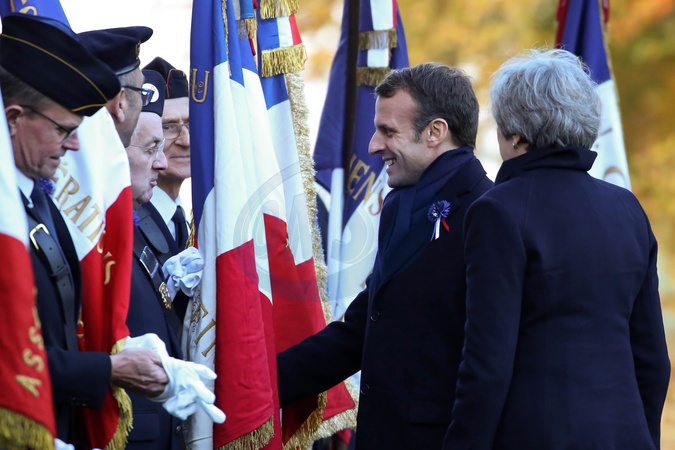 Emmanuel Macron i Theresa May w rocznice zakonczenia I wojny swiatowej