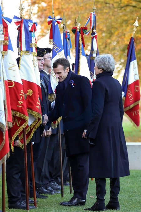 Emmanuel Macron i Theresa May w rocznice zakonczenia I wojny swiatowej