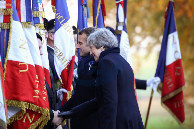 Emmanuel Macron i Theresa May w rocznice zakonczenia I wojny swiatowej