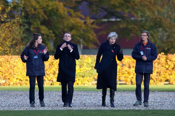 Emmanuel Macron i Theresa May w rocznice zakonczenia I wojny swiatowej