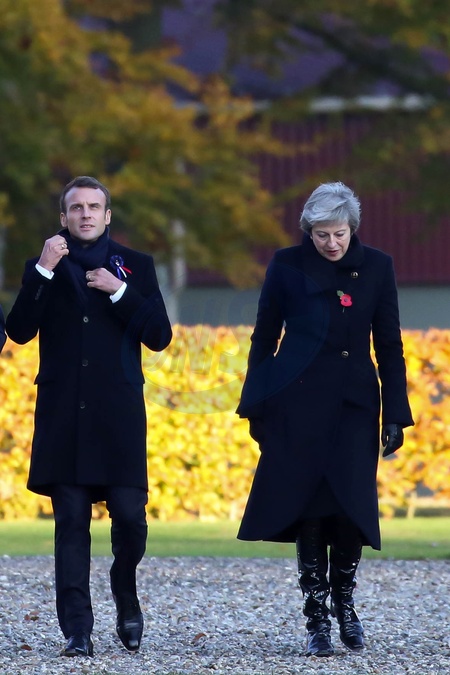 Emmanuel Macron i Theresa May w rocznice zakonczenia I wojny swiatowej
