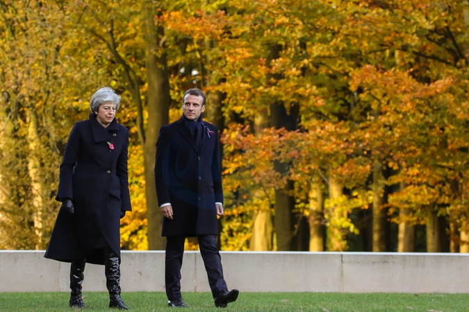 Emmanuel Macron i Theresa May w rocznice zakonczenia I wojny swiatowej