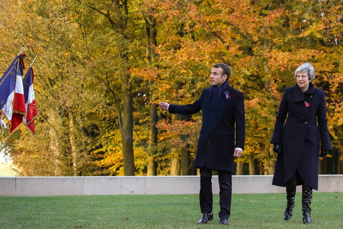 Emmanuel Macron i Theresa May w rocznice zakonczenia I wojny swiatowej